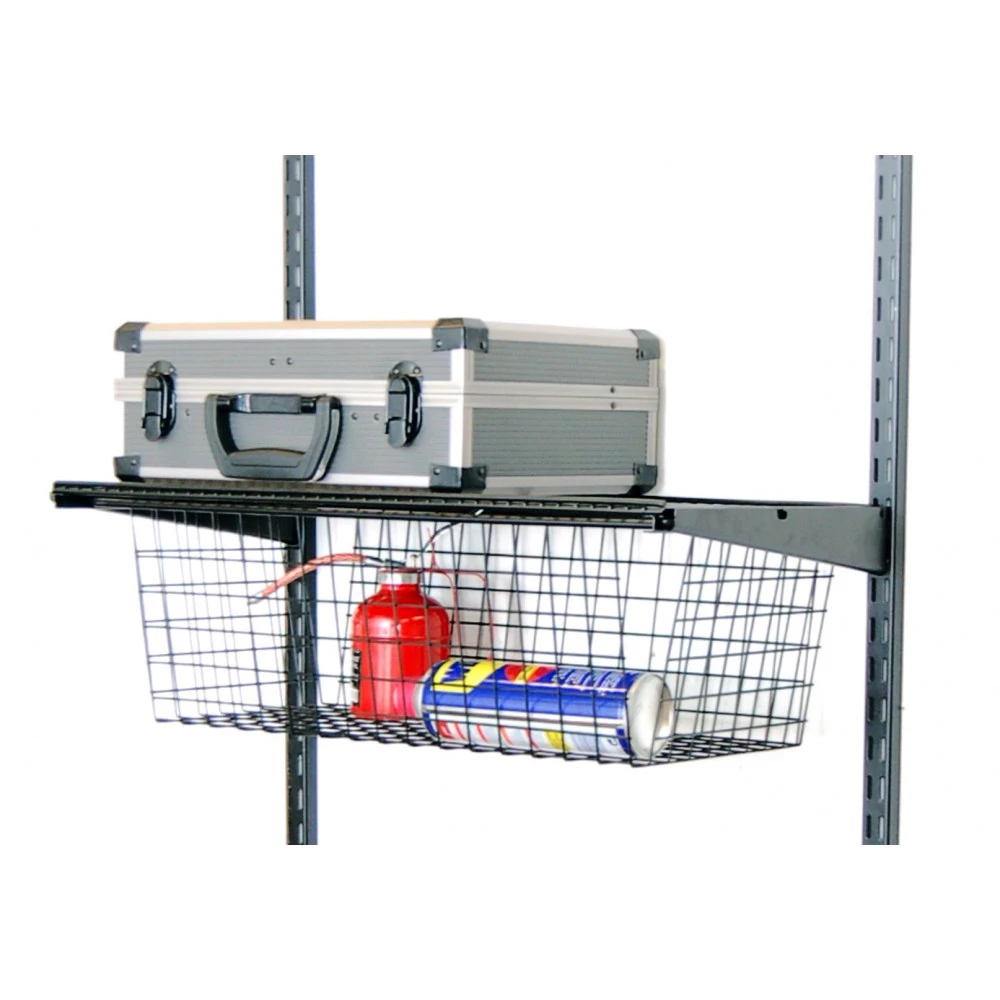 Kurv med udtræk opnås, hvis den monteres sammen med trådhylden (varenr. 16952 og 16956)