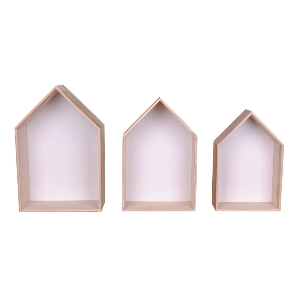 3 hylder i naturtræ og hvid