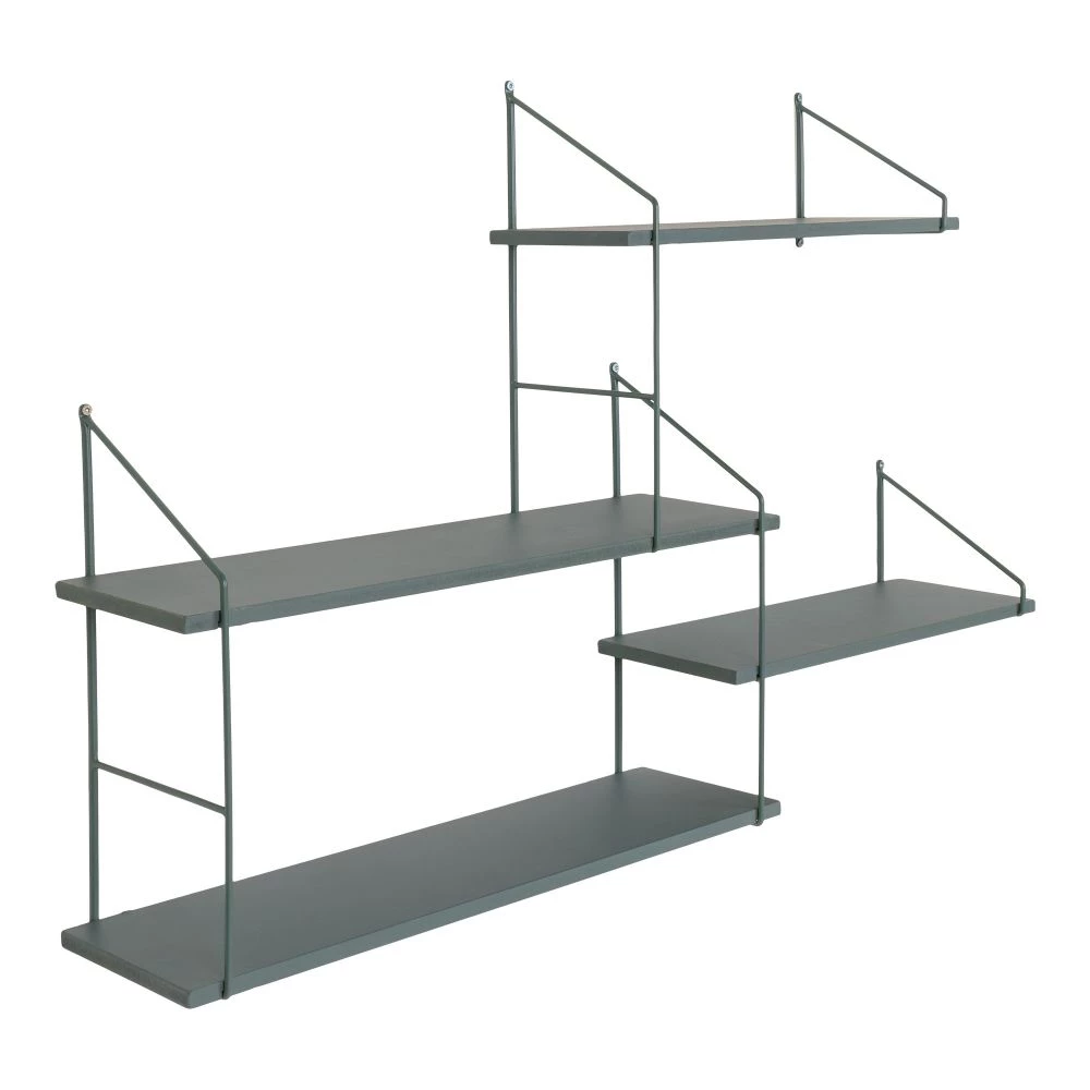 Hylde med grøn ramme og 4 grønne hylder forskudt