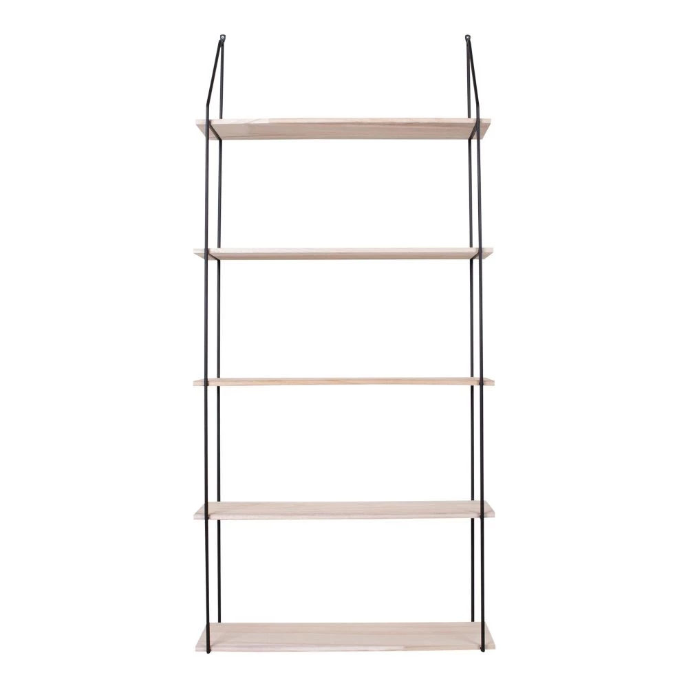 Hylde med sort ramme og 5 træhylder