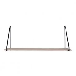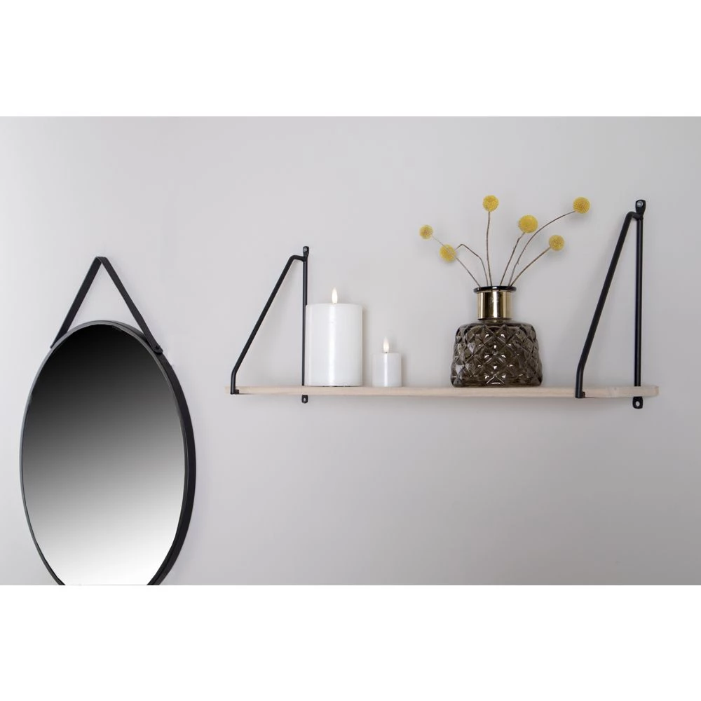 Hylde med sort ramme og en træ hylde
