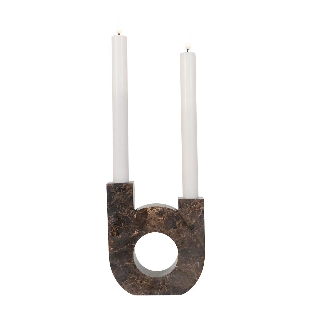 Lysestage i brun marmor med dobbelt holder 13×3,5×15 cm