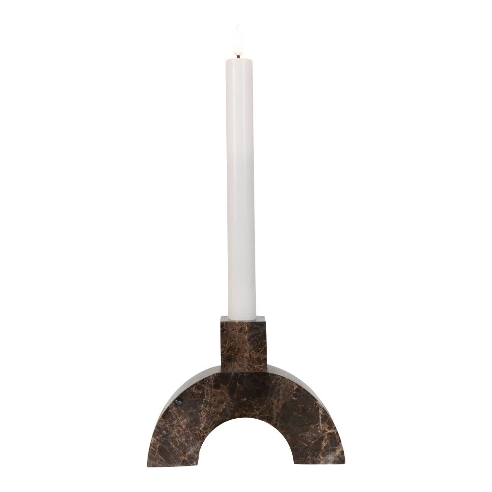 Lysestage i brun marmor med enkelt holder 3,5x15x11 cm