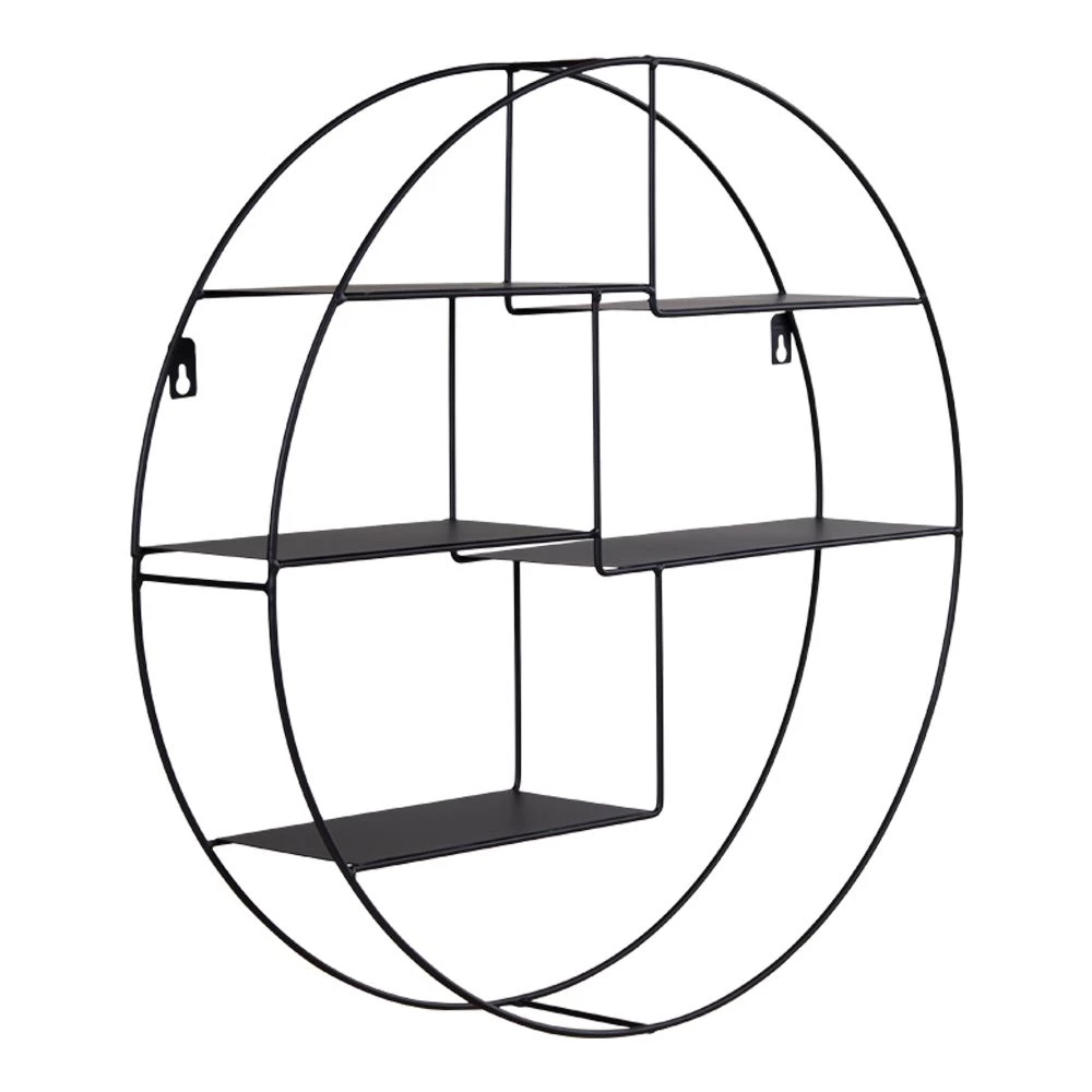 Rund hylde med sort metal ramme