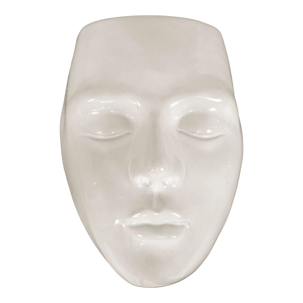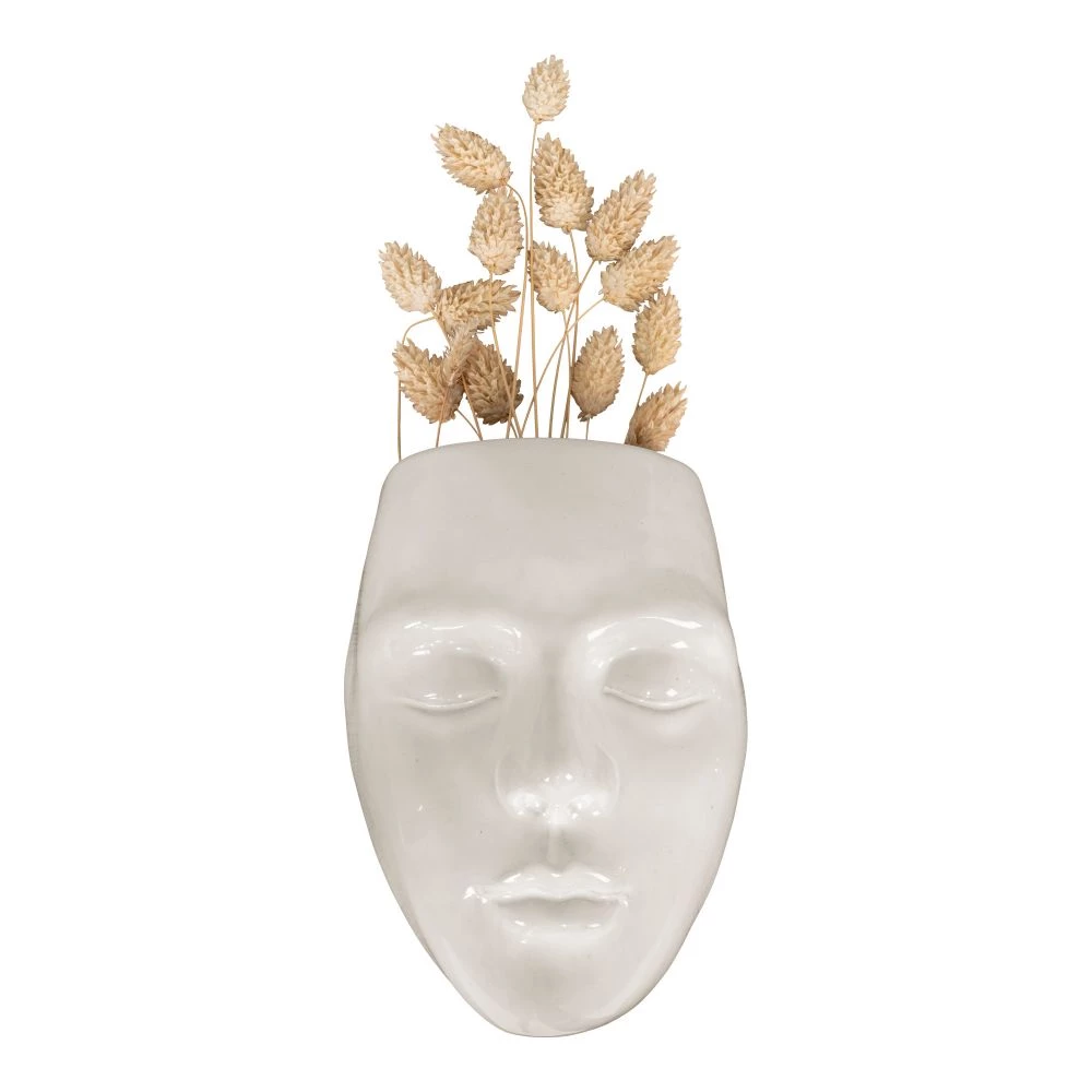 Urtepotte med ansigt i hvid keramik, væghængt, 13x9x18 cm
