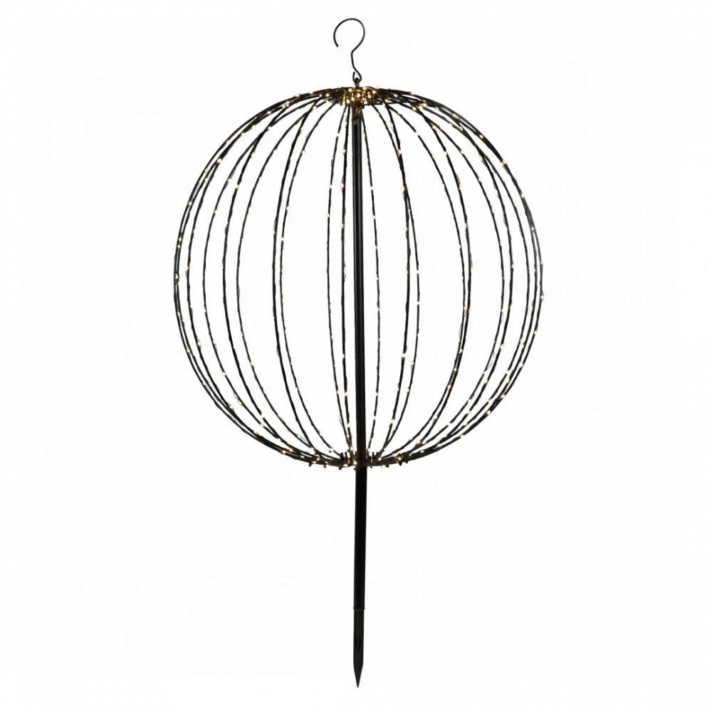 Metal kugle i sort farve i størrelse Ø50 cm. Kuglen har hele 320 LED lys og anvender 230 volt. Metal kuglen lyser op som en dekorativ ildkugle. Velegnet til udendørs brug. Flot belysning i haven, på terrassen eller til lysindretning store træer.